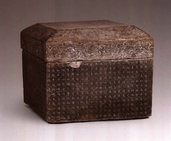 第二次出土是1969年冬。在距離第一次出土不遠(yuǎn)的地方,又出土了一個(gè)石函,函蓋刻有“比丘慧明造舍利石函”,函體正面陰刻楷書銘文104字,落款為“大周天和二年”。據(jù)石函銘文介紹,北周天和二年,即公元567年,當(dāng)時(shí)涇州寶寧寺和尚慧明為佛祖造像時(shí),將佛像和佛舍利一起供養(yǎng),以實(shí)現(xiàn)俱登正覺(jué)的宏愿。這次出土的石函內(nèi)有大小銅函,內(nèi)有琉璃瓶,共十粒舍利。這次出土也將古涇州大云寺的舍利供養(yǎng)史,提前到北周早期。